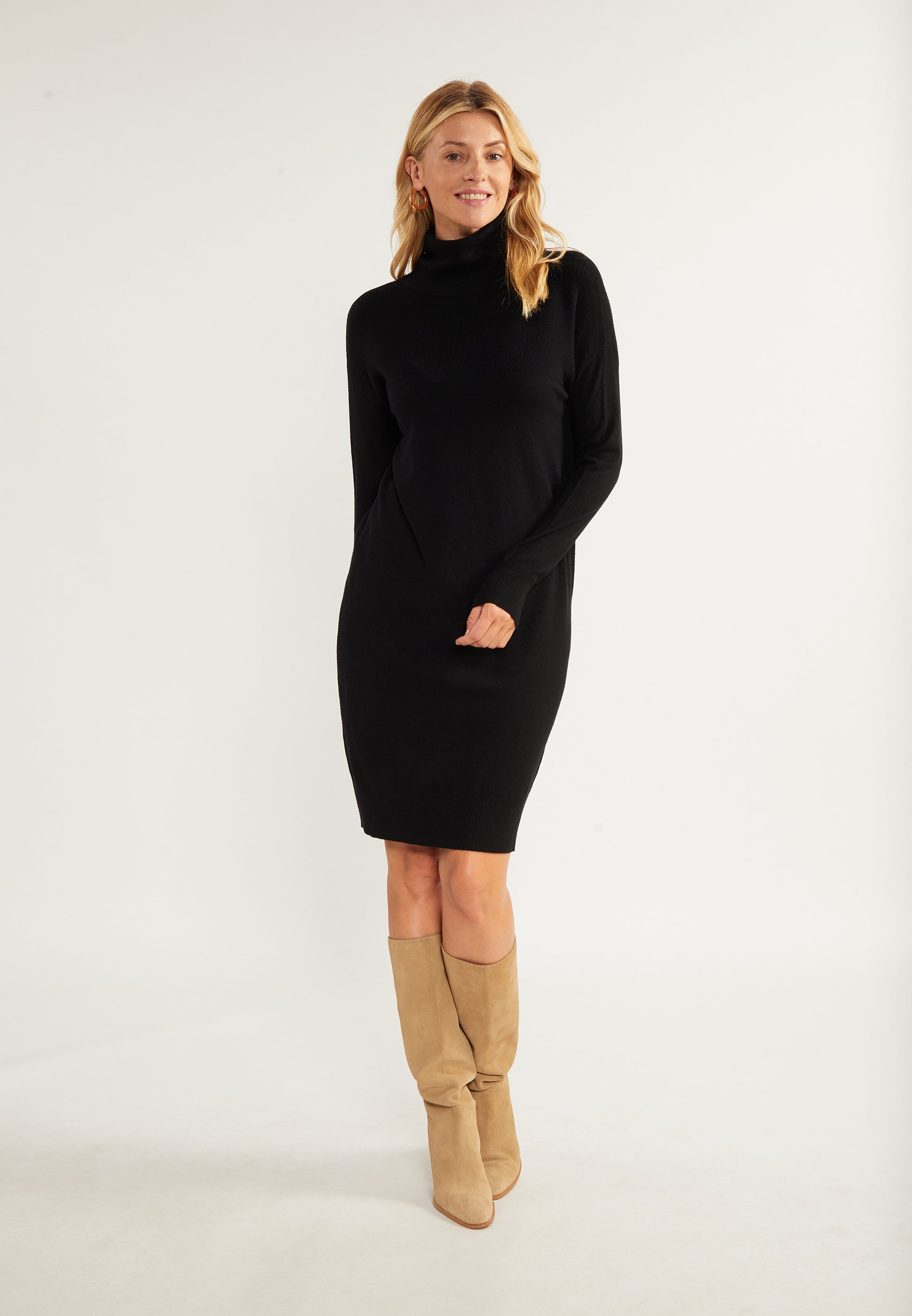 usha WHITE LABEL Women's Knit Long Sleeve Midi Dress
